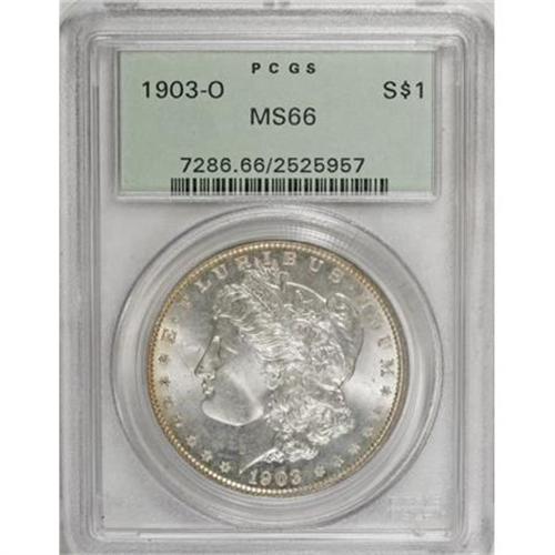 <B>1903-O $1 MS66 PCGS.</B></I> Well-defined with flashy luster and a measure of canary-gold peripheral toning on each side. Exquisitely preserved with a hint of haze over the otherwise silver-white centers of this late-date O-mint Morgan.<BR><BR><B>Coin Engraver:</B> George T. Morgan<BR><BR><b>Shipping:</b> Coins & Currency (<a target="_blank" href="http://www.heritageauctions.com/common/shipping.php">view shipping information</a>)