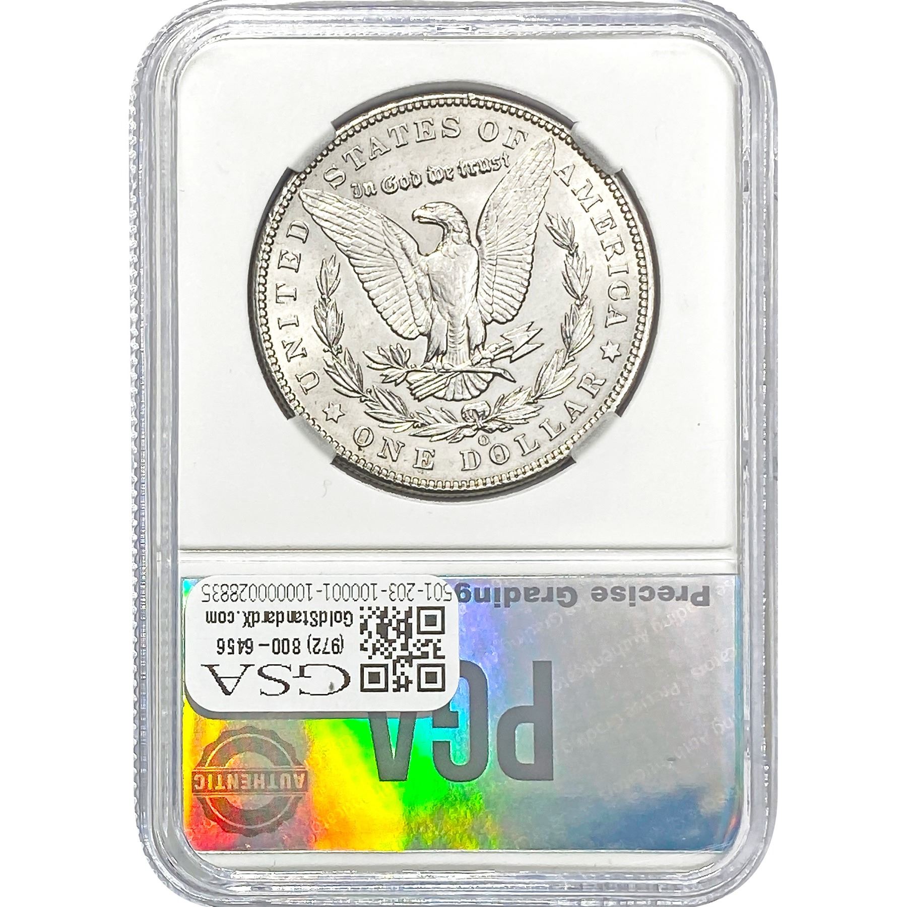 e. Coins sold referencing a third-party grading service are sold “AS IS” without any express or implied warranty, except for a guarantee by GSA that they are genuine. Removal or alteration of the holder, voids all of Bidder’s claims concerning that Product. Certain warranties may be available from the grading services and Bidders are referred to them for further details: Numismatic Guaranty Corporation (NGC), PO Box 4776, Sarasota, FL 34230, www.ngccoin.com/services/writtenguarantee.asp; Professional Coin Grading Services (PCGS), PO Box 9458, Newport Beach, CA 92658, www.pcgs.com/guarantee.html; ANACS, 6555 S. Kenton St., Ste. 303, Englewood, CO 80111; and Independent Coin Grading Co. (ICG), 7901 East Bellview, Ave., Suite 50, Englewood, CO 80111.