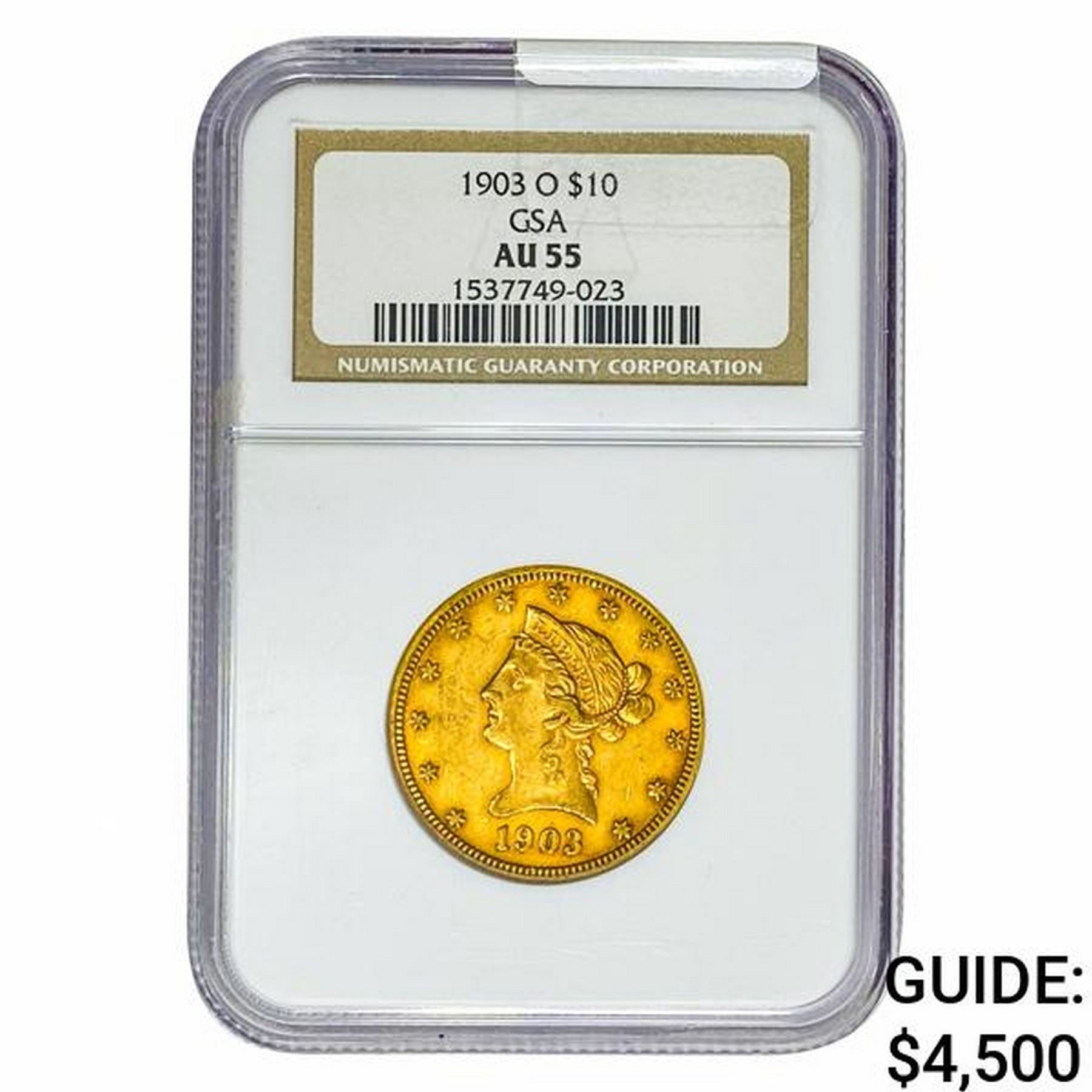 1903-O $10 Gold Eagle NGC AU55 GSA