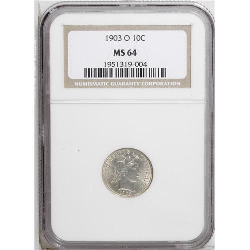 <B>1903-O<10C> MS64 NGC.</B></I> Choice and solidly struck with delicate golden-brown patina over the lower obverse fields. Both sides have vibrant luster. Census: 25 in 64, 3 finer (9/06).