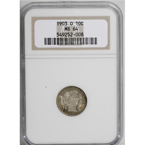 <B>1903-O<10C> MS64 NGC.</B></I> Choice with pleasing luster on the russet and dove-gray surfaces. Nicely struck and quite elusive in this grade and higher. Census: 25 in 64, 3 finer (7/06).