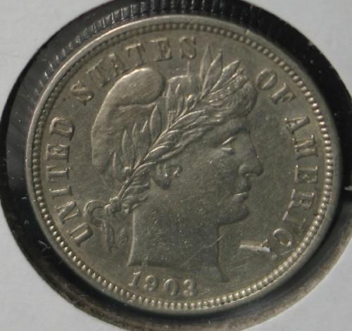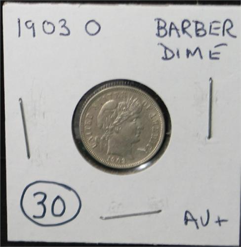 1903-O BARBER DIME. AU.