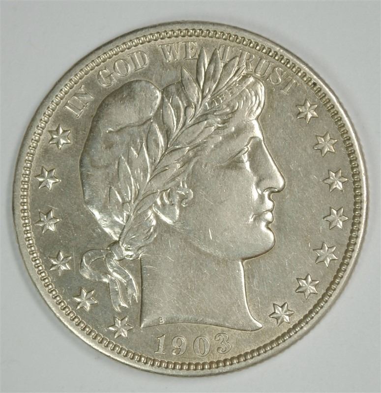 1903-O BARBER HALF DOLLAR, AU/UNC VERY NICE, SEMI-KEY DATE