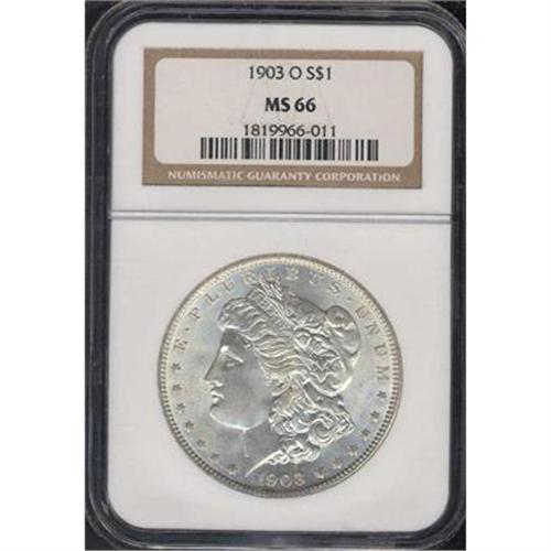<b>1903-O Morgan Dollar. NGC graded MS66.</b> From center to periphery the glare of luminous silvery luster glows; meanwhile, the strike as keen as a razor on this desirable 1903-O issue. A frosty white Gem <b>(PCGS # 7286)</b>