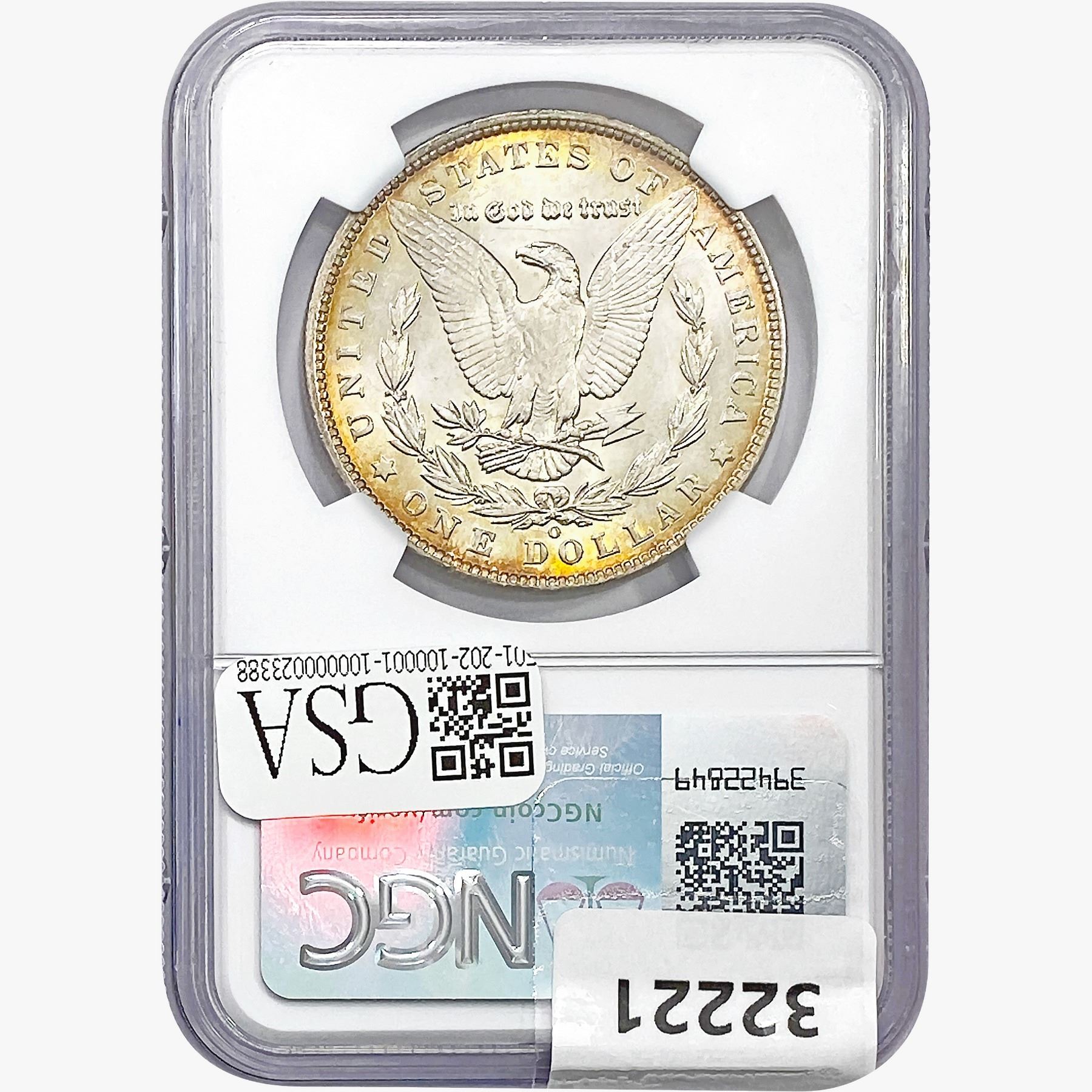 COINS AND CURRENCY LISTED IN GSA’S CATALOG AS GRADED AND ENCAPSULATED BY PCGS, NGC, ANACS, ICG, PCGS CURRENCY, PMG, PCGS BANKNOTE GRADING, CMC OR ANY OTHER THIRD-PARTY GRADING SERVICE ARE LIKEWISE SOLD “AS-IS” EXCEPT AS EXPRESSLY SET FORTH HEREIN. ALL THIRD-PARTY GRADING SERVICE GUARANTEES, INCLUDING AUTHENTICITY, ARE THE SOLE RESPONSIBILITY OF THE THIRD-PARTY GRADING SERVICE AND NOT WARRANTIES OR GUARANTEES OF GSA. BIDDERS SHOULD CONTACT THESE THIRD-PARTY GRADING SERVICES DIRECTLY WITH RESPECT TO ANY CLAIMS OR QUESTIONS THEY MAY HAVE CONCERNING THEIR GUARANTEES AND WARRANTIES. BIDDERS ACKNOWLEDGE AND AGREE THAT AUCTIONEER IS NOT BOUND BY OR LIABLE FOR ANY OPINION OR CERTIFICATION BY ANY THIRD-PARTY GRADING SERVICE. REMOVAL OF A PRODUCT FROM ITS PROTECTIVE CASING OR HOLDER OR ALTERATION OF ANY COIN HOLDER WAIVES ALL RIGHTS CONCERNING THE PRODUCT CONTAINED THEREIN.