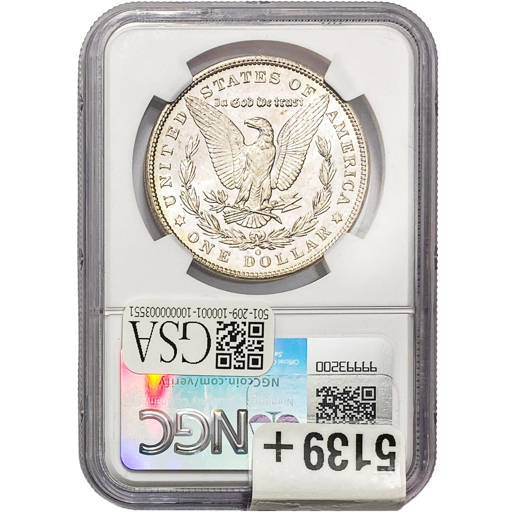 COINS AND CURRENCY LISTED IN GSA’S CATALOG AS GRADED AND ENCAPSULATED BY PCGS, NGC, ANACS, ICG, PCGS CURRENCY, PMG, PCGS BANKNOTE GRADING, CMC OR ANY OTHER THIRD-PARTY GRADING SERVICE ARE LIKEWISE SOLD “AS-IS” EXCEPT AS EXPRESSLY SET FORTH HEREIN. ALL THIRD-PARTY GRADING SERVICE GUARANTEES, INCLUDING AUTHENTICITY, ARE THE SOLE RESPONSIBILITY OF THE THIRD-PARTY GRADING SERVICE AND NOT WARRANTIES OR GUARANTEES OF GSA. BIDDERS SHOULD CONTACT THESE THIRD-PARTY GRADING SERVICES DIRECTLY WITH RESPECT TO ANY CLAIMS OR QUESTIONS THEY MAY HAVE CONCERNING THEIR GUARANTEES AND WARRANTIES. BIDDERS ACKNOWLEDGE AND AGREE THAT AUCTIONEER IS NOT BOUND BY OR LIABLE FOR ANY OPINION OR CERTIFICATION BY ANY THIRD-PARTY GRADING SERVICE. REMOVAL OF A PRODUCT FROM ITS PROTECTIVE CASING OR HOLDER OR ALTERATION OF ANY COIN HOLDER WAIVES ALL RIGHTS CONCERNING THE PRODUCT CONTAINED THEREIN.