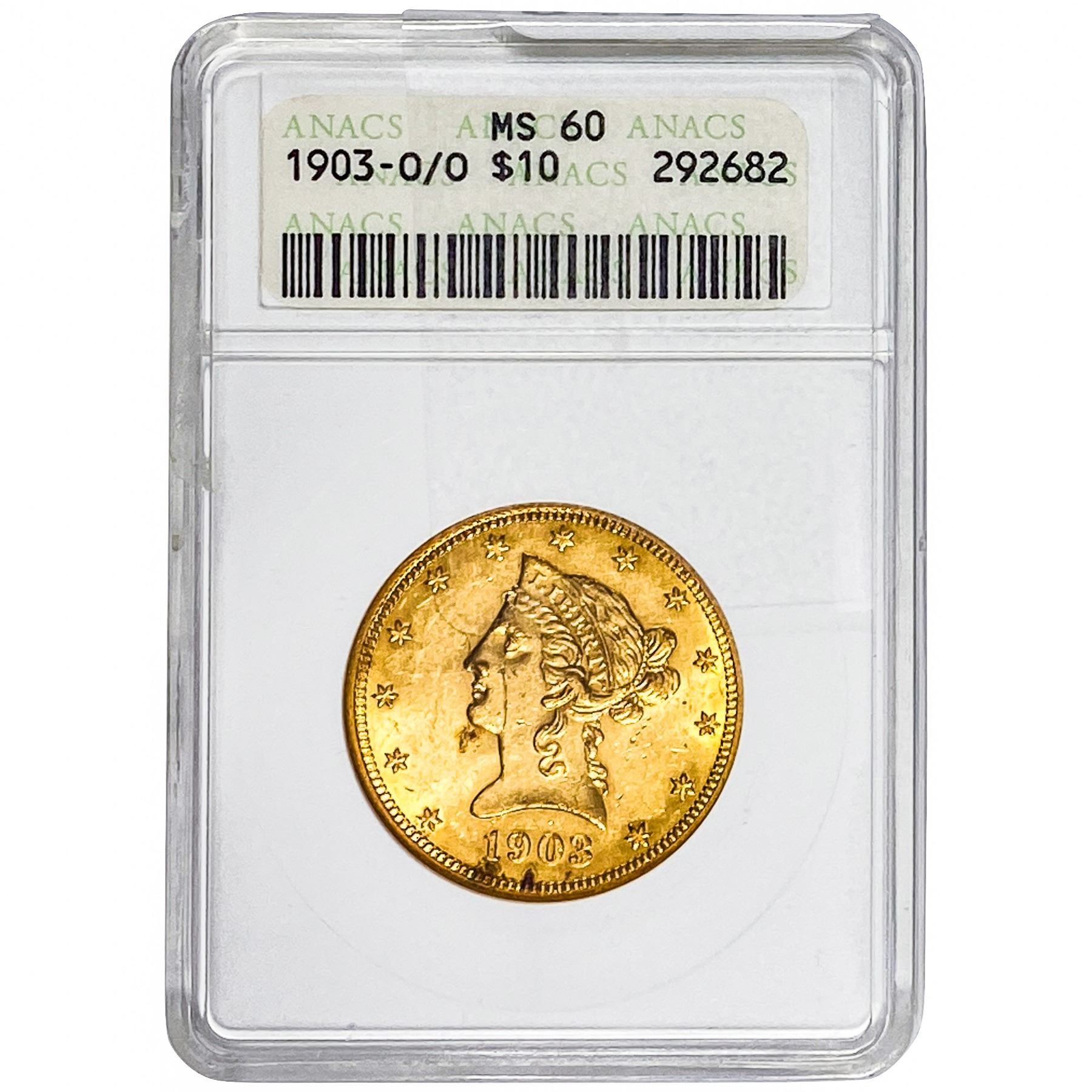 1903-O/O $10 Gold Eagle ANACS MS60