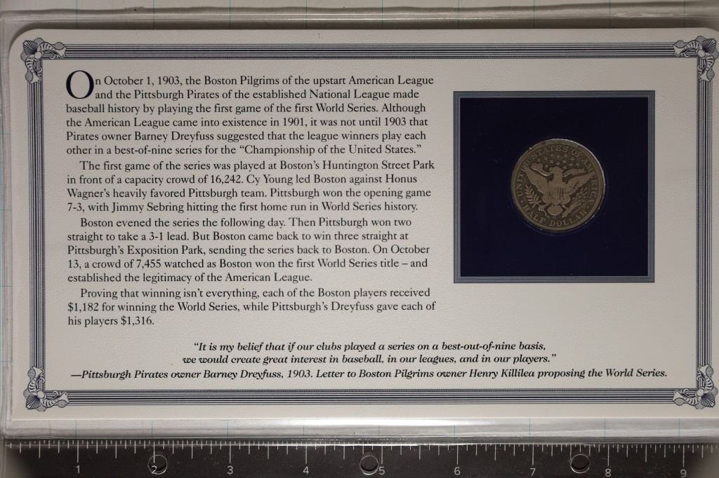 1ST WORLD SERIES OF BASEBALL, IN PLASTIC SLEEVE