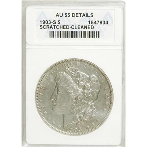 <B>1903-S $1 --Cleaned, Scratched--ANACS. AU55 Details.</B></I> NGC Census: (45/260). PCGS Population (28/604). Mintage: 1,241,000. Numismedia Wsl. Price for NGC/PCGS coin in AU55: $1,925. (#7288)<BR><BR><B>Coin Engraver:</B> George T. Morgan<BR><BR><b>Shipping:</b> Coins & Currency (<a target="_blank" href="http://www.heritageauctions.com/common/shipping.php">view shipping information</a>)