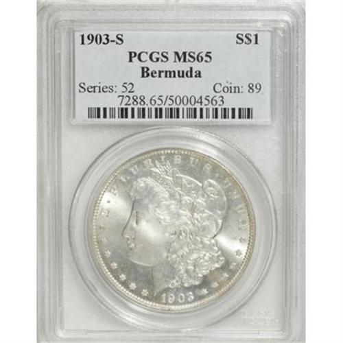 <B>1903-S $1 MS65 PCGS.</B></I> Ex: Bermuda. Elusive in Gem condition, the 1903-S is an issue that "comes nice," and as such this brilliant, distraction-free example is typical. Only a few grade-consistent abrasions are present, complementing exuberant cartwheel luster and a robust strike. PCGS has graded 41 coins finer (12/07).<BR><I>From The Motor City Collection.</B></I><BR><BR><B>Coin Engraver:</B> George T. Morgan<BR><BR><b>Shipping:</b> Coins & Currency (<a target="_blank" href="http://www.heritageauctions.com/common/shipping.php">view shipping information</a>)