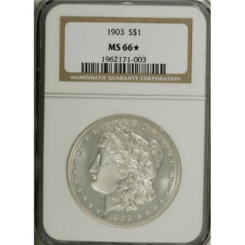 1903 S$1 MS66 S NGC. This stone-white Premium Gem has