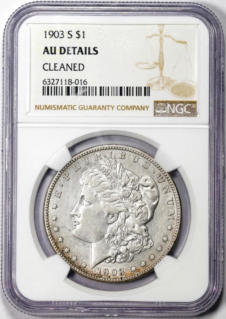 One 1903-S $1 Morgan Silver Dollar Coin NGC AU Details Cleaned. NGC Certified.
