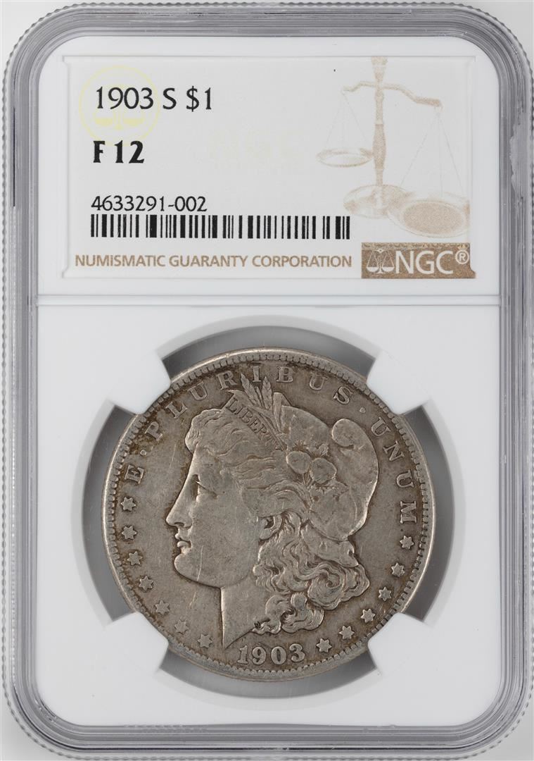 One 1903-S $1 Morgan Silver Dollar Coin NGC F12. NGC Certified.