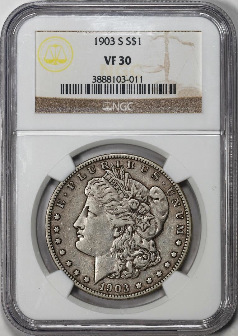 One 1903-S $1 Morgan Silver Dollar Coin NGC VF30. NGC Certified.