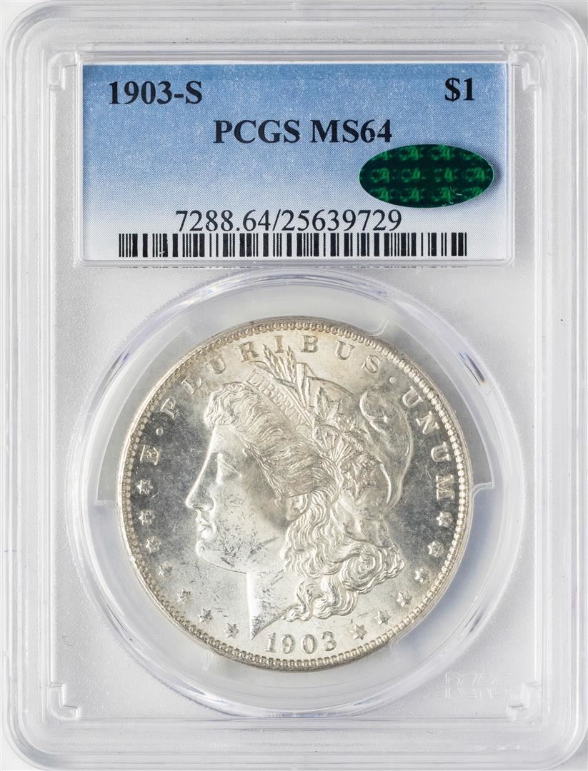 One 1903-S $1 Morgan Silver Dollar Coin PCGS MS64 CAC. PCGS Graded.
