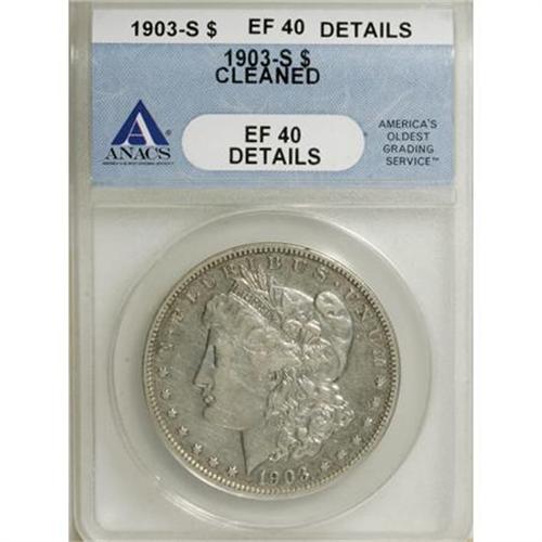 <B>1903-S $1 --Cleaned--ANACS XF40 Details.</B></I> NGC Census: (102/688). PCGS Population (141/916). Mintage: 1,241,000. Numismedia Wsl. Price for NGC/PCGS coin in XF40: $325. (#7288)<BR><BR><B>Coin Engraver:</B> George T. Morgan<BR><BR><b>Shipping:</b> Coins & Currency (<a target="_blank" href="http://www.heritageauctions.com/common/shipping.php">view shipping information</a>)