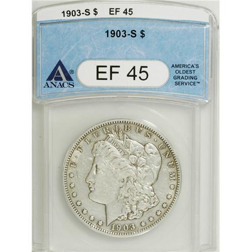 <B>1903-S $1 XF45 ANACS.</B></I> NGC Census: (213/427). PCGS Population (157/706). Mintage: 1,241,000. Numismedia Wsl. Price: $494. (#7288)<BR><BR><b>Shipping:</b> Coins & Currency (<a target="_blank" href="http://www.heritageauctions.com/common/shipping.php">view shipping information</a>)