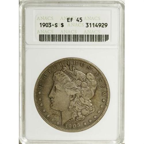 <B>1903-S $1 XF45 ANACS.</B></I> NGC Census: (224/443). PCGS Population (171/726). Mintage: 1,241,000. Numismedia Wsl. Price for NGC/PCGS coin in XF45: $780. (#7288)<BR><BR><B>Coin Engraver:</B> George T. Morgan<BR><BR><b>Shipping:</b> Coins & Currency (<a target="_blank" href="http://www.heritageauctions.com/common/shipping.php">view shipping information</a>)