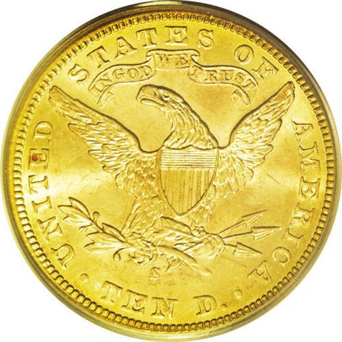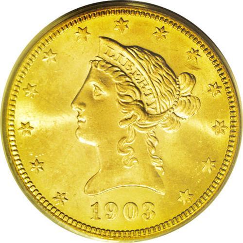 <B>1903-S<$10> MS64 PCGS.</B></I> This magnificent specimen is housed in an older green-label holder, and it is an exceptional example for the grade. Although both sides have a few light abrasions that are expected for the grade, the strike is full and the luster is bold, with brilliant yellow-gold surfaces and traces of lemon toning.