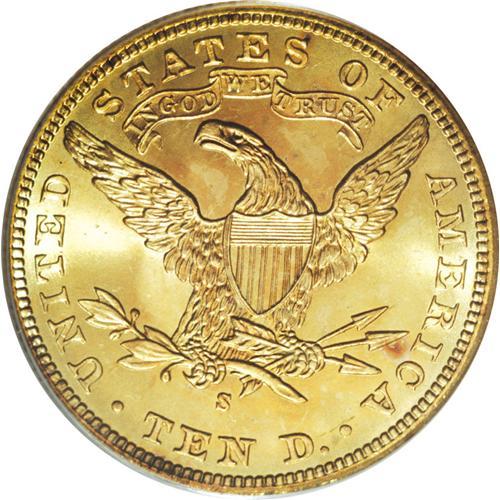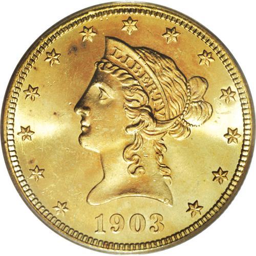 <B>1903-S $10 MS65 PCGS.</B></I> Lovely apricot-gold and lime-green colors race across radiantly lustrous surfaces, and a solid strike emboldens the design elements. A few minute obverse marks are within the parameters of the MS65 grade designation. The 1903-S is not particularly tough through near-Gem, but is challenging in MS65 and better. Population: 44 in 65, 16 finer (3/07).<BR><BR><b>Shipping:</b> Coins & Currency (<a target="_blank" href="http://www.heritageauctions.com/common/shipping.php">view shipping information</a>)