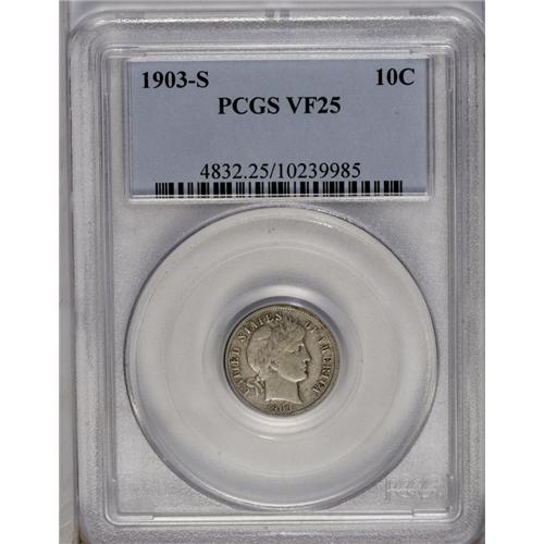 <B>1903-S<10C> VF25 PCGS.</B></I> A full LIBERTY resides on this moderately circulated and attractive light-gray example.