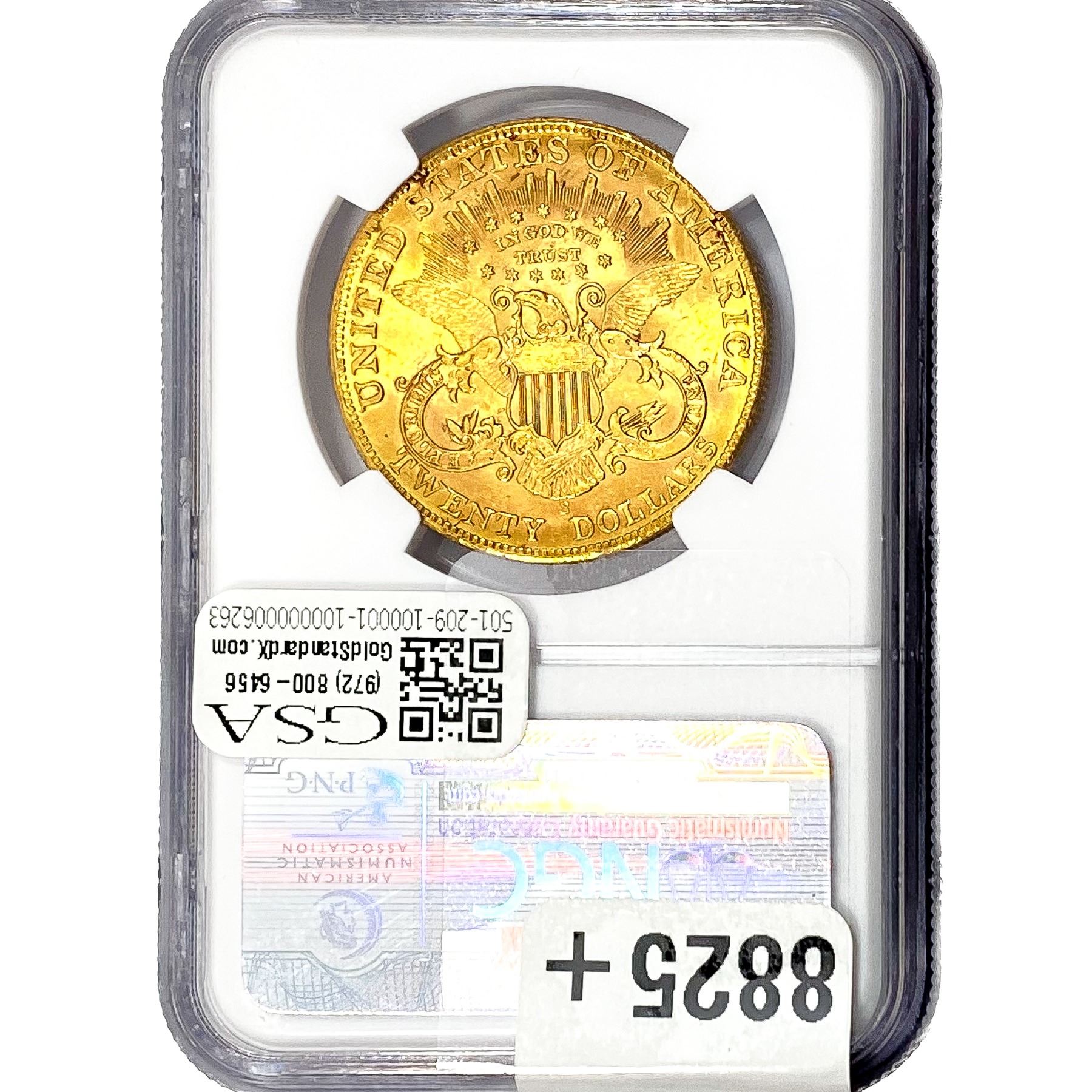 COINS AND CURRENCY LISTED IN GSA’S CATALOG AS GRADED AND ENCAPSULATED BY PCGS, NGC, ANACS, ICG, PCGS CURRENCY, PMG, PCGS BANKNOTE GRADING, CMC OR ANY OTHER THIRD-PARTY GRADING SERVICE ARE LIKEWISE SOLD “AS-IS” EXCEPT AS EXPRESSLY SET FORTH HEREIN. ALL THIRD-PARTY GRADING SERVICE GUARANTEES, INCLUDING AUTHENTICITY, ARE THE SOLE RESPONSIBILITY OF THE THIRD-PARTY GRADING SERVICE AND NOT WARRANTIES OR GUARANTEES OF GSA. BIDDERS SHOULD CONTACT THESE THIRD-PARTY GRADING SERVICES DIRECTLY WITH RESPECT TO ANY CLAIMS OR QUESTIONS THEY MAY HAVE CONCERNING THEIR GUARANTEES AND WARRANTIES. BIDDERS ACKNOWLEDGE AND AGREE THAT AUCTIONEER IS NOT BOUND BY OR LIABLE FOR ANY OPINION OR CERTIFICATION BY ANY THIRD-PARTY GRADING SERVICE. REMOVAL OF A PRODUCT FROM ITS PROTECTIVE CASING OR HOLDER OR ALTERATION OF ANY COIN HOLDER WAIVES ALL RIGHTS CONCERNING THE PRODUCT CONTAINED THEREIN.