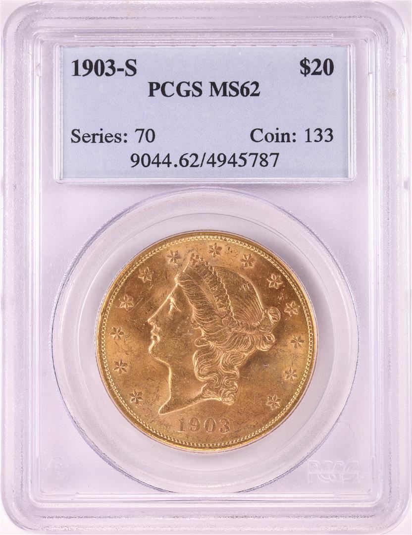 One 1903-S $20 Liberty Head Double Eagle Gold Coin PCGS MS62. PCGS Graded.