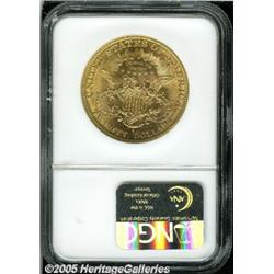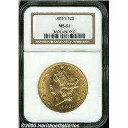 <B>1903-S $20 MS61 NGC.</B></I> Bright, lustrous surfaces take on a brassy appearance, and display numerous small contact marks over the obverse. The design elements are sharply struck throughout.