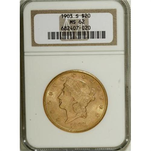 1903-S $20 MS62 NGC. NGC Census: (1865/1324). PCGS