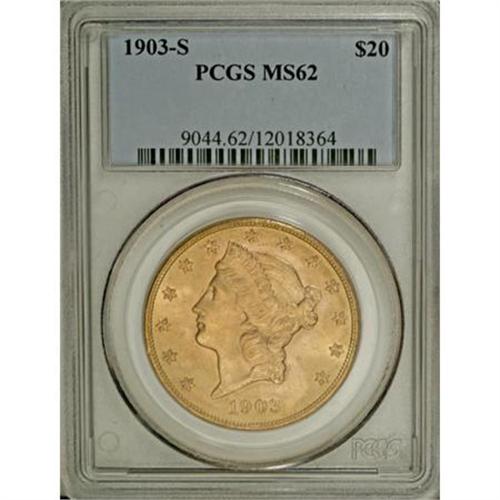 <B>1903-S $20 MS62 PCGS.</B></I> Sharp definition is visible on the design features. Lustrous golden-tan surfaces reveal light contact marks, more so on the obverse.<BR><I>From The York/Hallenbeck #2 Current Finest PCGS Registry Set of Liberty Double Eagles.</B></I><BR><BR><B>Coin Engraver:</B> James B. Longacre<BR><BR><b>Shipping:</b> Coins & Currency (<a target="_blank" href="http://www.heritageauctions.com/common/shipping.php">view shipping information</a>)