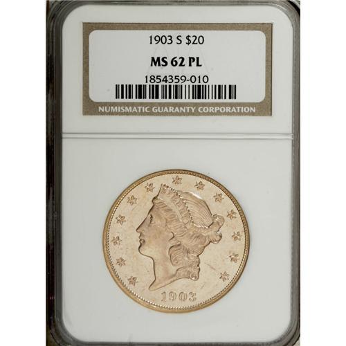 1903-S $20 MS62 Prooflike NGC. A flashy and well struc