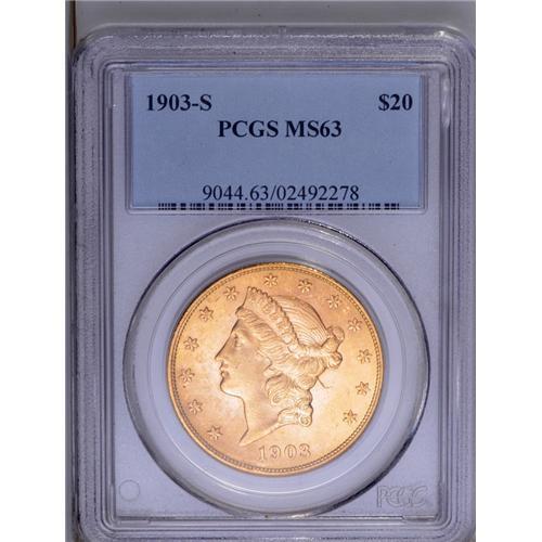 1903-S $20 MS63 PCGS. Well struck, and highly lustrous