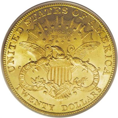 <B>1903-S $20 MS64 PCGS.</B></I> For most collectors seeking a high-grade 1903-S double eagle, an MS64 example, such as the one found in the current lot, is the best they can realistically hope to find. Gems are quite rare; PCGS and NGC have certified fewer than 20 MS65s (some of which are likely resubmissions), and none finer! This coin is exquisitely struck and possesses highly lustrous peach-gold surfaces with tinges of light green. A few minute obverse marks limit the grade.<BR><BR><b>Shipping:</b> Coins & Currency (<a target="_blank" href="http://www.heritageauctions.com/common/shipping.php">view shipping information</a>)