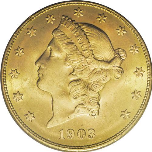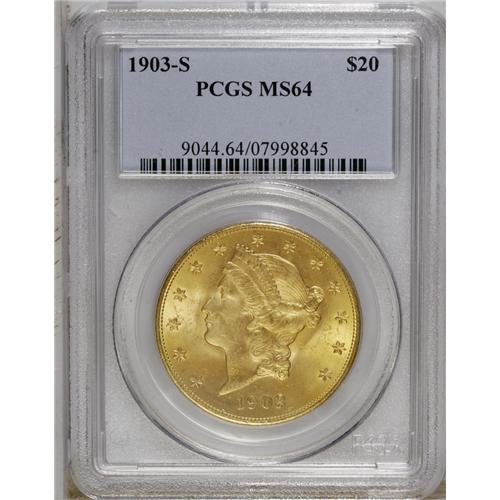 1903-S $20 MS64 PCGS. This lustrous khaki-gold example