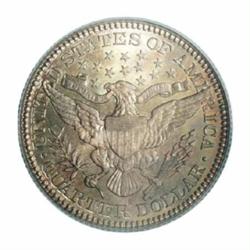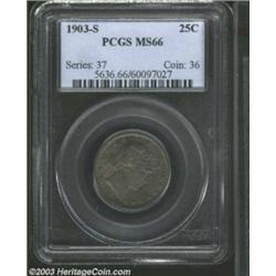 <TABLE cellSpacing=0 cellPadding=0 width="100%" bgColor=#000000 border=0><TBODY><TR><TD width="100%"><TABLE cellSpacing=1 cellPadding=3 width="100%" border=0><TBODY><TR><TD width="100%" bgColor=#79735c><FONT face=arial color=#ffffff size=3><B>Description</B> </FONT></TD></TR><TR><TD width="100%" bgColor=#ffffff><FONT face=arial size=2><B>1903-S 25C MS66 PCGS.</B></I> Colorfully toned in original, medium shades of rose, gray, golden, and sea-green. Well struck with minimal contact marks, one of only just over 1 million business strikes. This is an important coin that combines rarity, technical quality, and tantalizing eye appeal under the umbrella of the respected MS66 grade. Population: 6 in 66, 2 finer (8/03). </FONT></TD></TR></TBODY></TABLE></TD></TR></TBODY></TABLE><BR><A name=PricesRealized></A><TABLE cellSpacing=0 cellPadding=0 width="100%" bgColor=#000000 border=0><TBODY><TR><TD width="100%"><TABLE cellSpacing=1 cellPadding=3 width="100%" border=0><TBODY><TR><TD width="100%" bgColor=#79735c><A name=PR><FONT face=arial color=#ffffff size=3><B>Previous Prices from Heritage Auctions</B> </FONT></A></TD></TR><TR><TD bgColor=#f6f6ed><TABLE cellSpacing=0 cellPadding=0 width="100%" border=1><TBODY><TR><TD align=middle width="33%"><B>Date</B></TD><TD align=middle width="33%"><B>Service</B></TD><TD align=middle width="33%"><B>Price</B></TD></TR><TR bgColor=whitesmoke><TD width="33%"><B>04/15/2003</B></TD><TD width="33%">PCGS</TD><TD width="33%">$2,817.50</TD></TR></TBODY></TABLE></TD></TR><TR><TD bgColor=#ffffff><FONT face=arial size=1 ?>PLEASE NOTE: All prices realized reflect the final hammer price PLUS the buyer's premium in auctions that charge a buyer's premium. Each item has a notation at the top of the listing indicating whether that lot included a buyer's premium. Example: A item that sells with a final hammer price of $100 and a 20% buyer's premium will display with a price realized of $120. All information listed is intended to be as accurate as possible, but errors are possible. Please use this guide carefully and inform us of any inaccuracies. </FONT></TD></TR></TBODY></TABLE></TD></TR></TBODY></TABLE><BR><TABLE cellSpacing=0 cellPadding=0 width="100%" bgColor=#000000 border=0><TBODY><TR><TD width="100%"><TABLE cellSpacing=1 cellPadding=3 width="100%" border=0><TBODY><TR><TD width="100%" bgColor=#79735c colSpan=6><FONT face=arial color=#ffffff size=3><B>Price Guide*</B> </FONT></TD></TR><TR bgColor=#f6f6ed><TD align=middle><B>Grade</B> </TD><TD align=middle><B>Coin World<BR>(Trends)</B> </TD><TD align=middle><B>Numismedia<BR>Retail</B> </TD><TD align=middle><B>Numismedia<BR>Wholesale</B> </TD><TD align=middle><B>Coin<BR>Universe</B> </TD><TD align=middle><B>Heritage<BR>Value Index</B> </TD></TR><TR bgColor=#ffffff><TD align=middle>65</TD><TD align=right>$2,450.00</TD><TD align=right>---</TD><TD align=right>$2,175.00</TD><TD align=right>$2,750.00</TD><TD align=right>$2,000.00</TD></TR><TR style="FONT-WEIGHT: bold" bgColor=#cccfdd><TD align=middle>66</TD><TD align=right>---</TD><TD align=right>---</TD><TD align=right>---</TD><TD align=right>$4,050.00</TD><TD align=right>$2,642.50</TD></TR><TR bgColor=#ffffff><TD align=middle>67</TD><TD align=right>---</TD><TD align=right>---</TD><TD align=right>---</TD><TD align=right>---</TD><TD align=right>---</TD></TR><TR bgColor=#ffffff><TD colSpan=6><FONT size=1>*All information listed is intended to be as accurate as possible, but errors are possible. No item may be returned or refused based on this information which is provided as a service to our customers. You should contact each pricing source directly to determine the accuracy of this information. </FONT></TD></TR></TBODY></TABLE></TD></TR></TBODY></TABLE><BR><TABLE cellSpacing=0 cellPadding=0 width="100%" bgColor=#000000 border=0><TBODY><TR><TD width="100%"><TABLE cellSpacing=1 cellPadding=3 width="100%" border=0><TBODY><TR><TD width="100%" bgColor=#79735c><FONT face=arial color=#ffffff size=3><B>Population Guide</B> </FONT></TD></TR><TR bgColor=#ffffff><TD align=middle><!-- Begin Output of Population Grid--><TABLE cellSpacing=0 cellPadding=0 width="100%" border=0><TBODY><TR><TD vAlign=center><TABLE cellSpacing=0 width="100%" border=1 cellsadding="3"><TBODY><TR><TD vAlign=center><TABLE cellSpacing=0 cellPadding=3 width="100%" border=1><TBODY><TR><TD vAlign=center align=middle bgColor=#f0f1e8 colSpan=2 <CENTER><FONT face=Arial size=2><B>PCGS Pop </B></FONT><CENTER></CENTER></TD><TD vAlign=center align=middle bgColor=#f0f1e8 colSpan=2><CENTER><FONT face=Arial size=2><B>NGC Pop</B></CENTER></FONT></TD></TR><TR><TD vAlign=center><FONT face=Arial size=2>(66)</FONT> </TD><TD vAlign=center align=right><FONT face=Arial size=2>6</FONT> </TD><TD vAlign=center><FONT face=Arial size=2>(66)</FONT> </TD><TD vAlign=center align=right><FONT face=Arial size=2>1</FONT> </TD></TR><TR><TD vAlign=center><FONT face=Arial size=2>(>66)</FONT> </TD><TD vAlign=center align=right><FONT face=Arial size=2>2</FONT> </TD><TD vAlign=center><FONT face=Arial size=2>(>66)</FONT> </TD><TD vAlign=center align=right><FONT face=Arial size=2>1</FONT> </TD></TR></TBODY></TABLE></TD></TR></TBODY></TABLE></TD></TR></TBODY></TABLE><!-- End Output of Population Grid--> Important notice: Heritage usually auctions material at the rate of 200-250 lots per hour. On some occasions eBay Live bid software or the Internet may not be able to keep up with the pace of the auction. We recommend placing a realistic absentee bid now as insurance to avoid disappointment. Occasionally the auctioneer may eliminate or reject an eBay Live bid, and the auctioneer may also reopen a lot after the close of the eBay live bidding (usually because we missed an audience bid), and may reject your bid even if it shows you as the winning bidder. By bidding via eBay Live, you agree that Heritage may award the lot to another bidder at its sole discretion under the circumstances described above or any other reasonable circumstances. Also please note that all He
