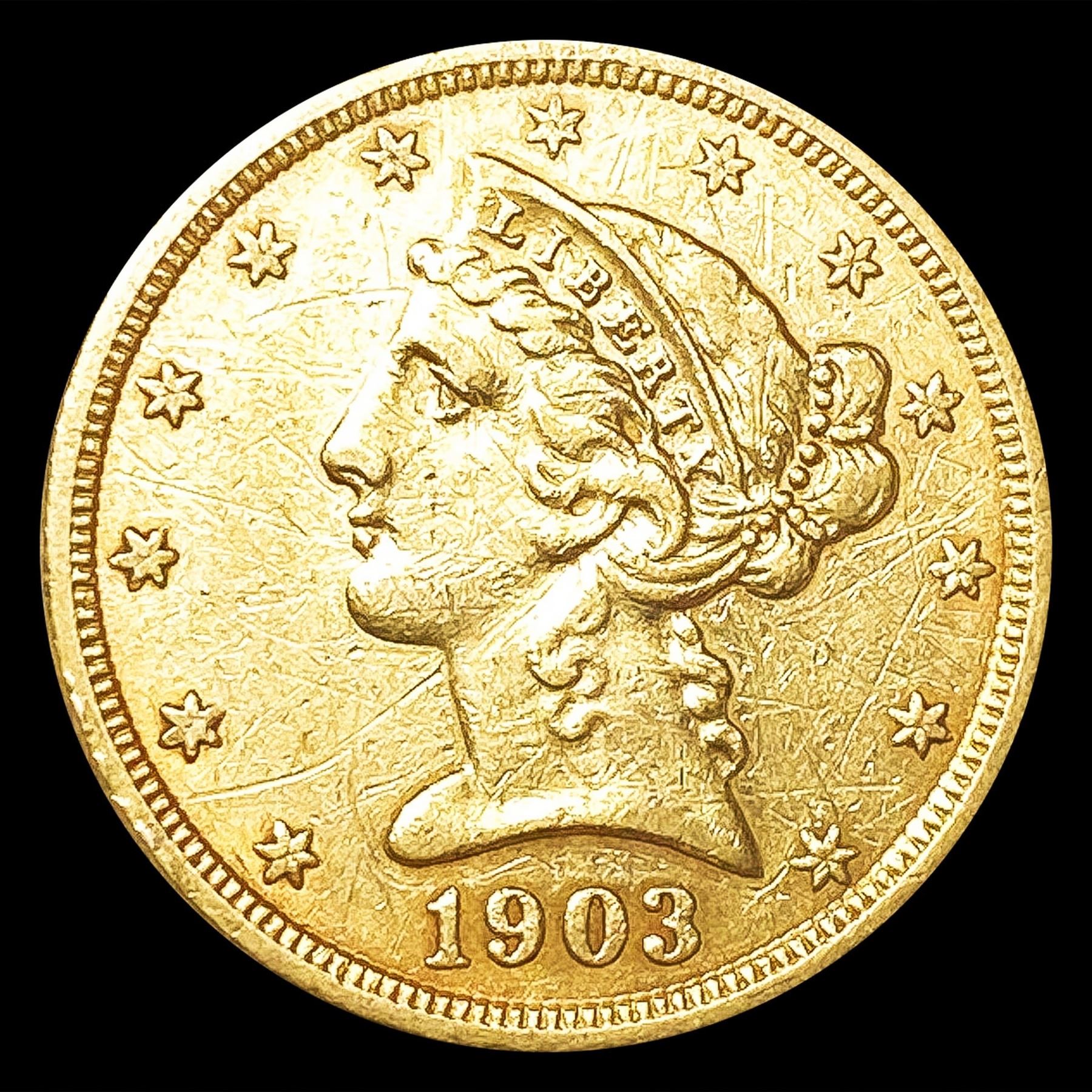 1903-S $5 Gold Half Eagle LIGHTLY CIRCULATED
