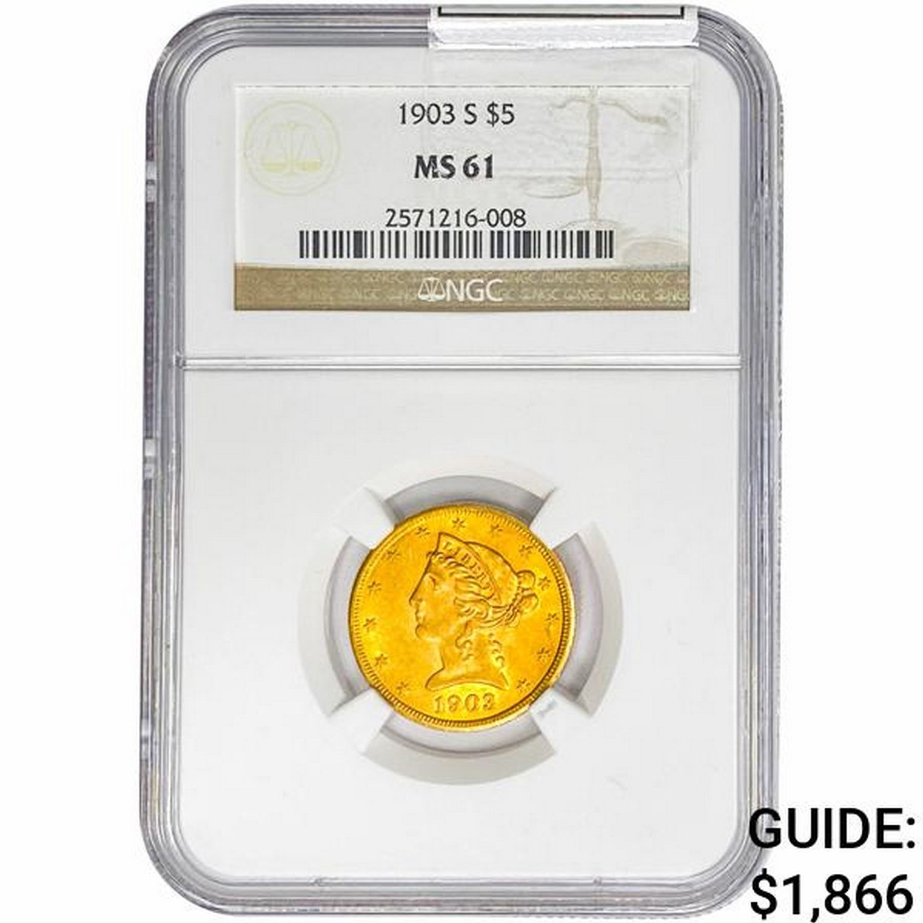 1903-S $5 Gold Half Eagle NGC MS61
