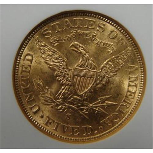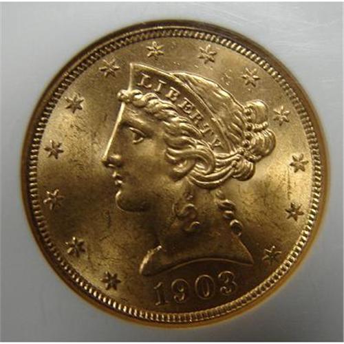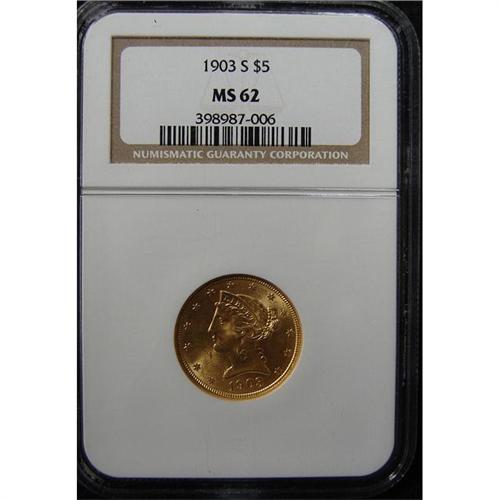 1903-S $5 LIBERTY GOLD COIN. MS 62. Graded by NGC.