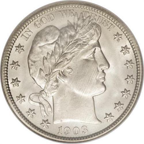 <B>1903-S 50C MS64 NGC. CAC.</B></I> Another tough S-mint in the series in Mint State grades, the 1903-S is often encountered with planchet striations, as seen here. While not affecting the technical grade, they are obvious with the naked eye. Otherwise the lustrous surfaces are trouble-free, with silver-gold patina and some semiprooflikeness in evidence. The strike is well but not fully executed. Census: 18 in 64, 8 finer (1/08).<BR><I>From The Southwest Collection.</B></I><BR><BR><B>Coin Engraver:</B> Charles E. Barber<BR><BR><b>Shipping:</b> Coins & Currency (<a target="_blank" href="http://www.heritageauctions.com/common/shipping.php">view shipping information</a>)