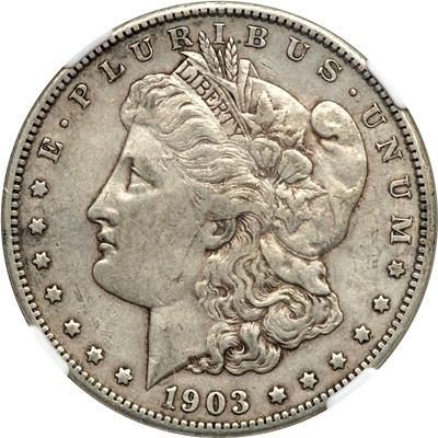 1903-S Morgan Dollar. NGC graded AU-50. Even gray toning the color of "old silver" -- natural, uncleaned, attractive (PCGS # 7288) .
