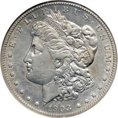 1903-S Morgan Dollar. NGC graded AU-50. Lightly toned with some luster around the devices. A scarce date absent from most collections (PCGS # 7288) .