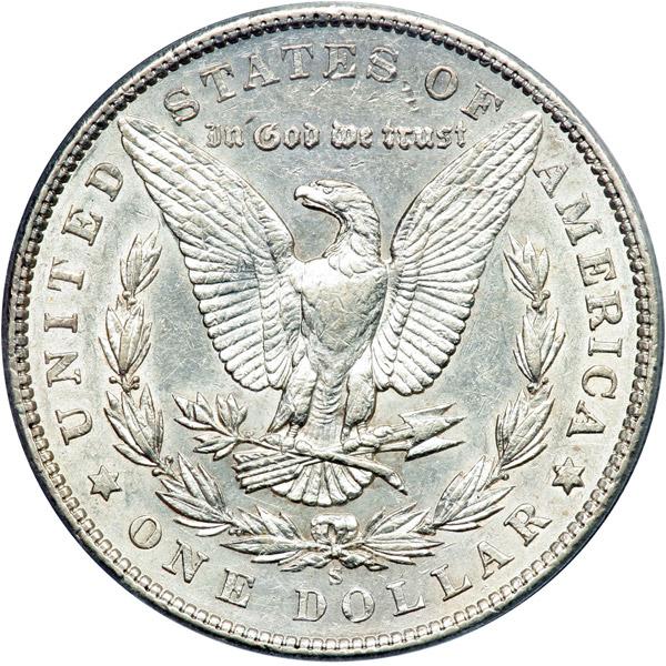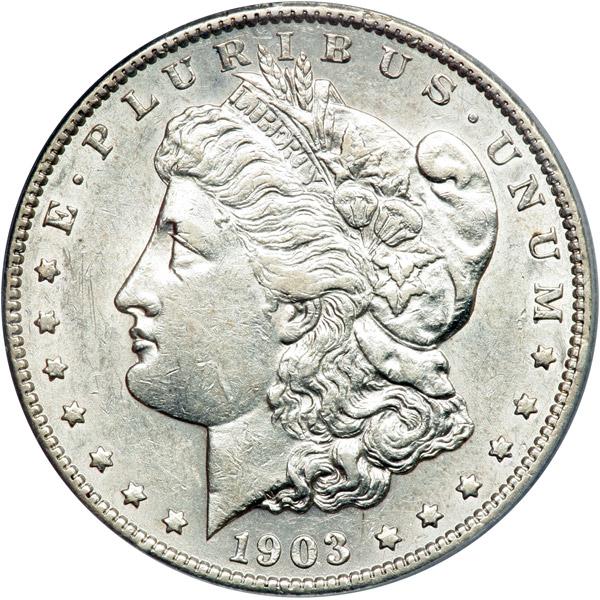 1903-S Morgan Dollar. PCGS graded AU-53. Untoned example which displays extensive mint frost in the fields as well as throughout the main devices. An attractive coin. Scarce in choice condition like this (PCGS # 7288) .