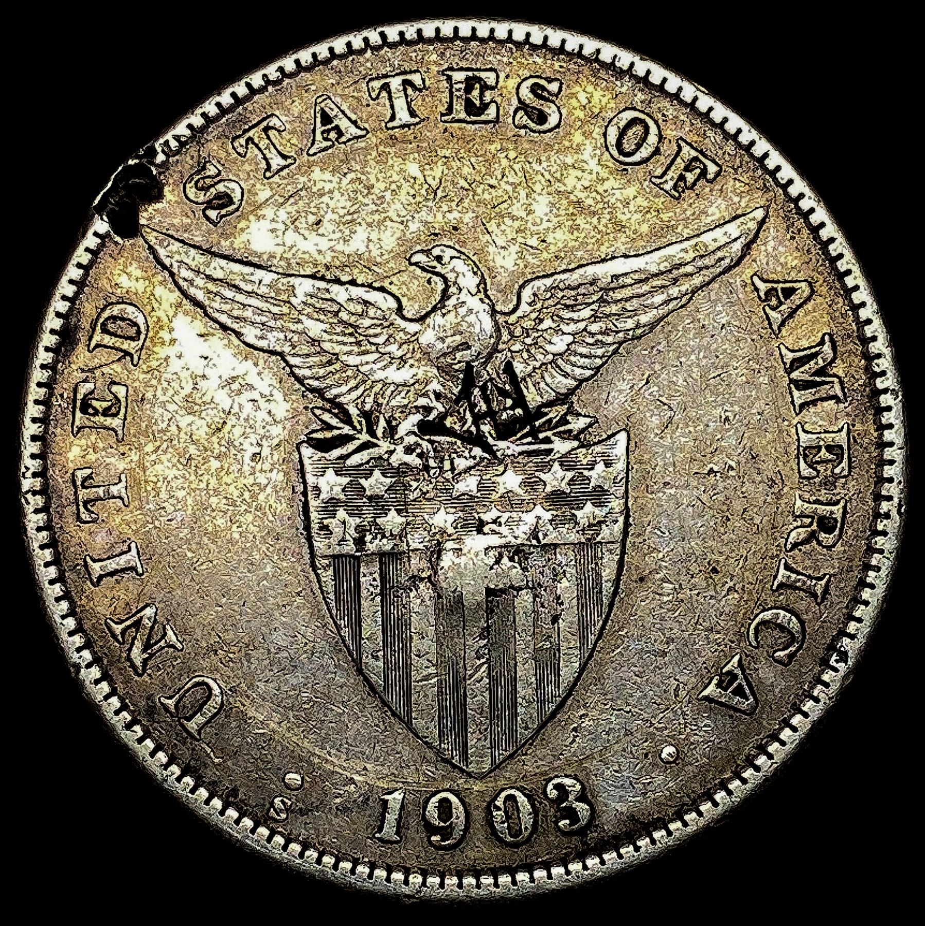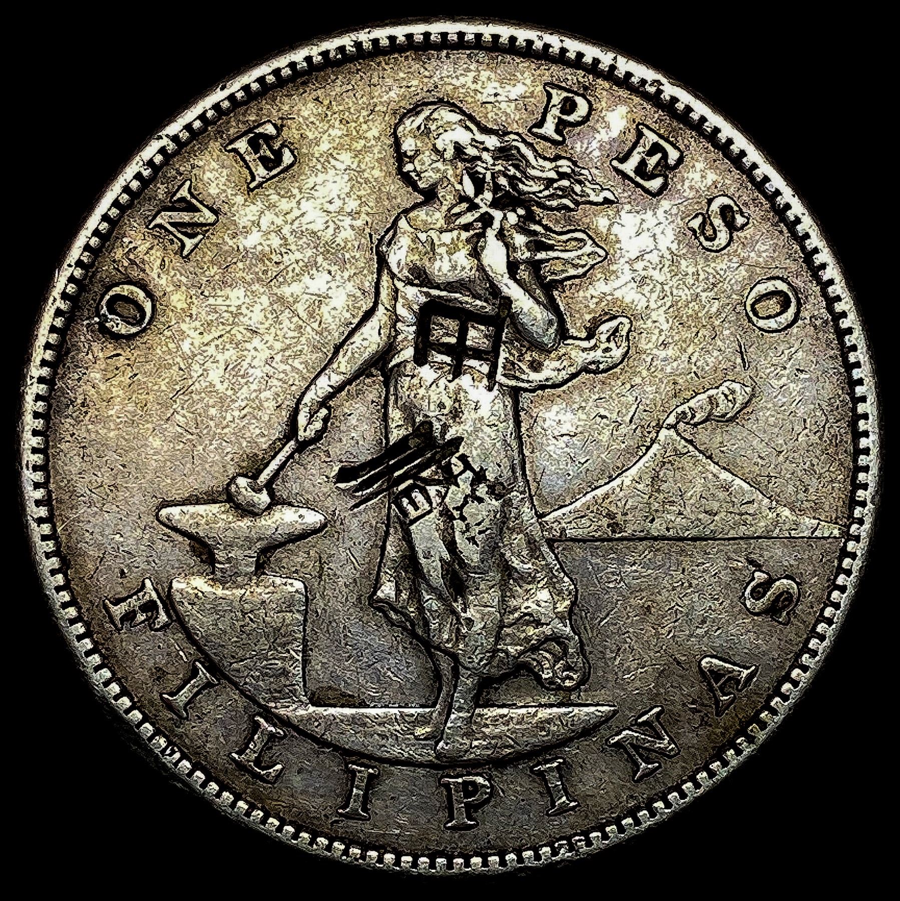 1903-S Philippine Silver 1 Peso with Chop Marks NEARLY UNCIRCULATED