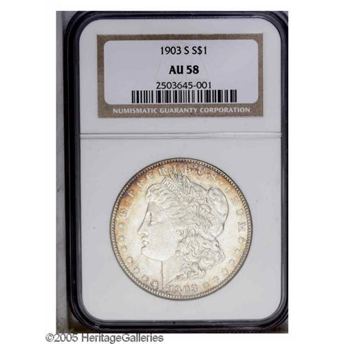 1903-S S$1 AU58 NGC. Well struck with mottled burnt-or 1903-S[S$1] AU58 NGC.