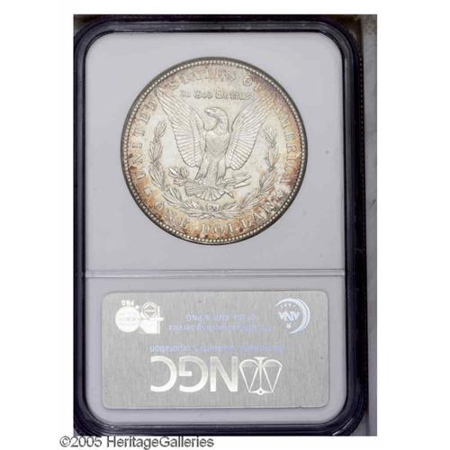 <B>1903-S<S$1> AU58 NGC.</B></I> Well struck with mottled burnt-orange, russet, dark-green, and golden patina near the borders, and extensive luster for the grade. A few hairlines and small abrasions are noticeable on each of the two sides, but highpoint wear seems to be absent.