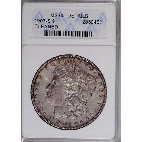 <B>1903-S<img border='0' src='http://www.heritagecoins.com/images/star.gif' width=10 height=10>$1>--Cleaned--ANACS. MS60 Details.</B></I> Little evidence of the cleaning remains visible on the reverse of this fully lustrous and lightly toned example. All of the design details are sharply defined. A pleasing and important example.