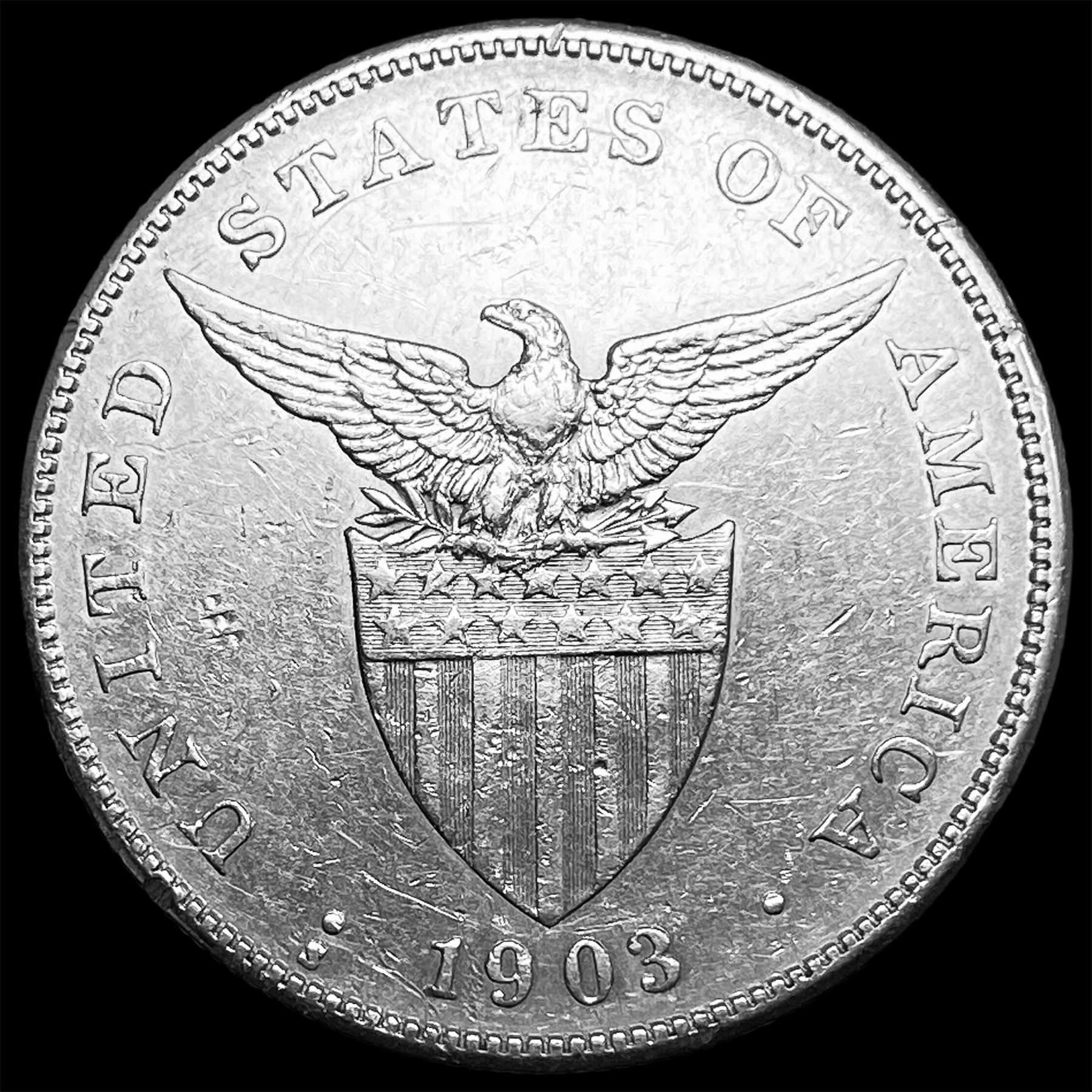 1903-S Silver One Peso Philippines CLOSELY UNCIRCULATED