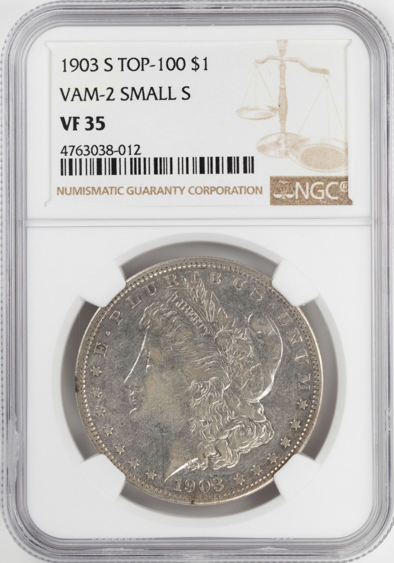 One 1903-S Top 100 $1 Morgan Silver Dollar Coin NGC VF35 VAM-2 Small S.