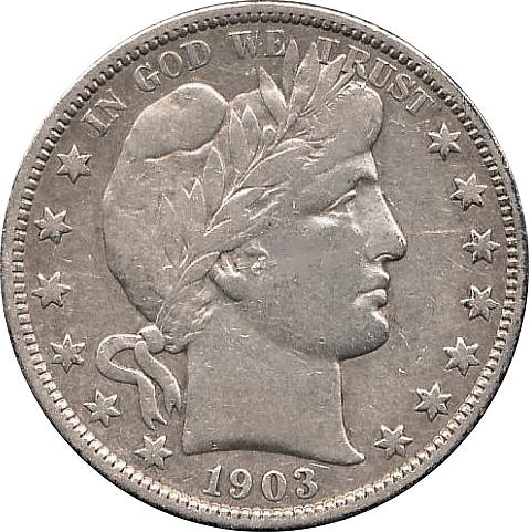 1903 SILVER BARBER HALF DOLLAR-LIGHTLY CIRC