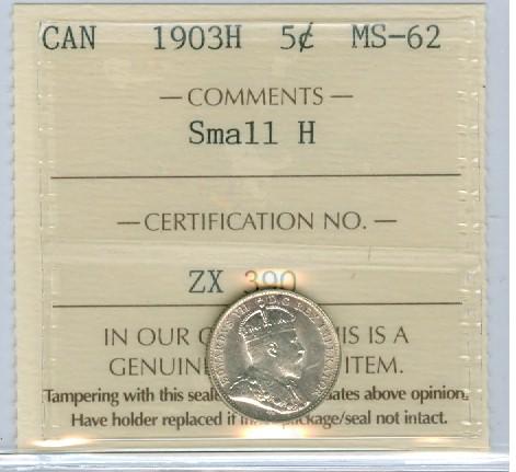 1903 Small H 5¢ ICCS MS62 PQ+ Brilliant!